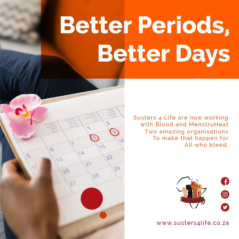 Susters4Life are now working with Blood and MenstruHeat – two amazing organisations – to make that happen for all who bleed. Contact us for more about this partnership.
