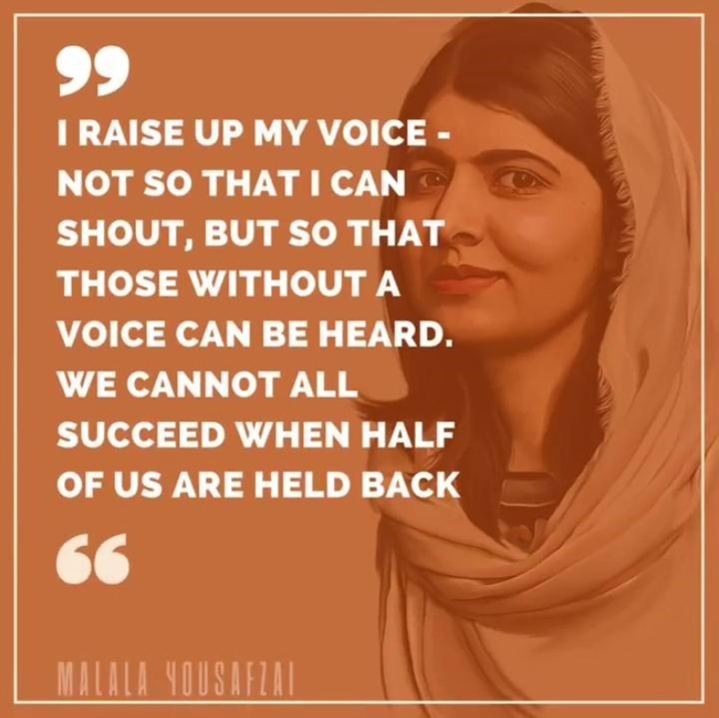 “I raise up my voice – not so that I can shout, but so that those without a voice can be heard. We cannot all succeed when half of us are held back.” – Malala Yousafzai
